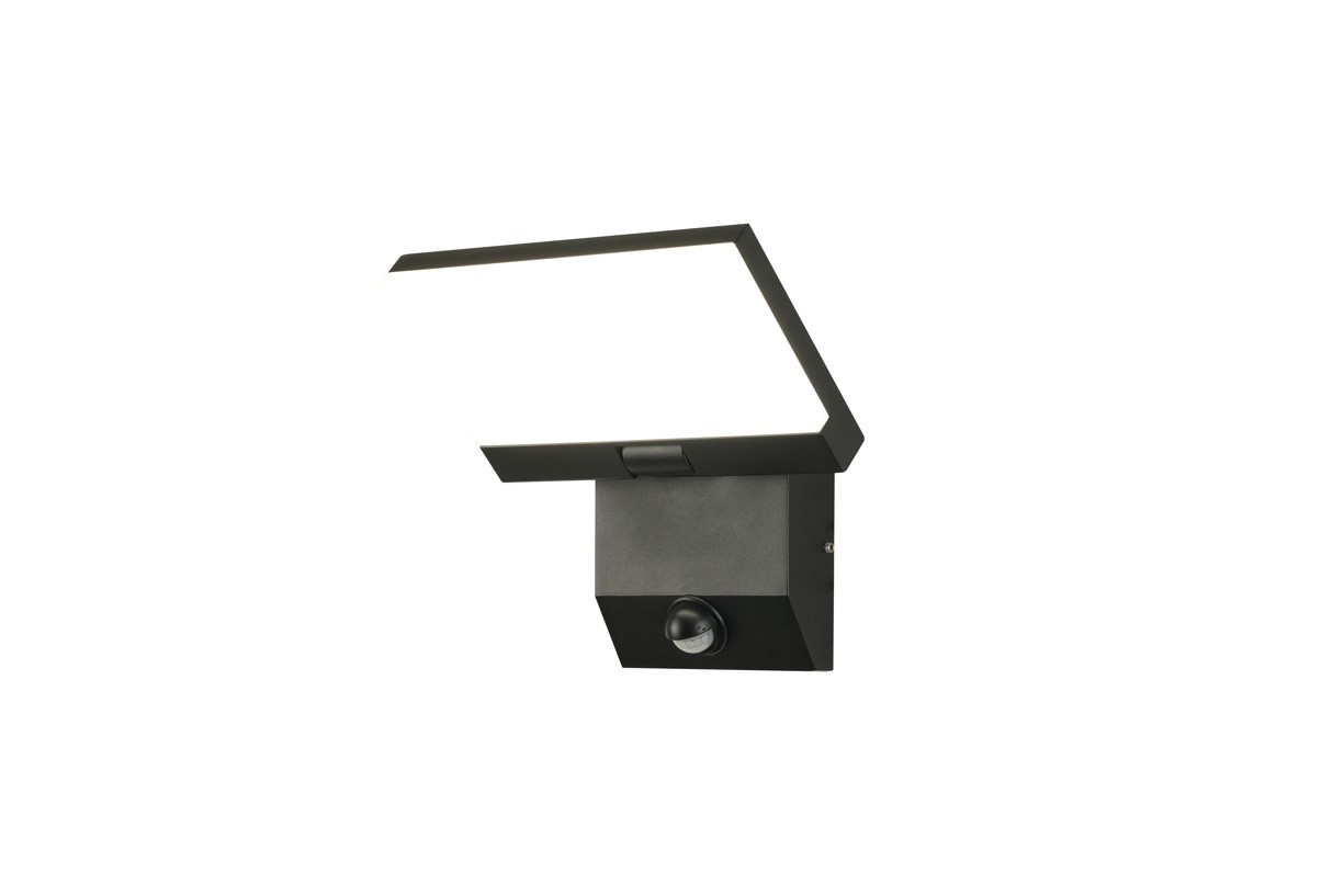 LED 18W PIR IP65 - Nástěnné venkovní svítidlo, PIR senzor pohybu, záběr 120°, dosah 3-5m, nast. směr svícení, hliník, černá, dif. plast opál, LED 18W, 1278lm, neutrální 4000K, 230V, IP65, 200x160x115mm, svítí dolů
