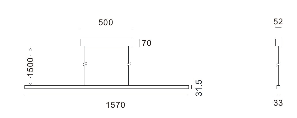 | Rozměry | 1570x33×31mm, vč. záv. lanka l=1500mm, lze zkr, svítí nahoru/dolů. Uváděné rozměry jsou pouze informativní a výrobce je může změnit. |