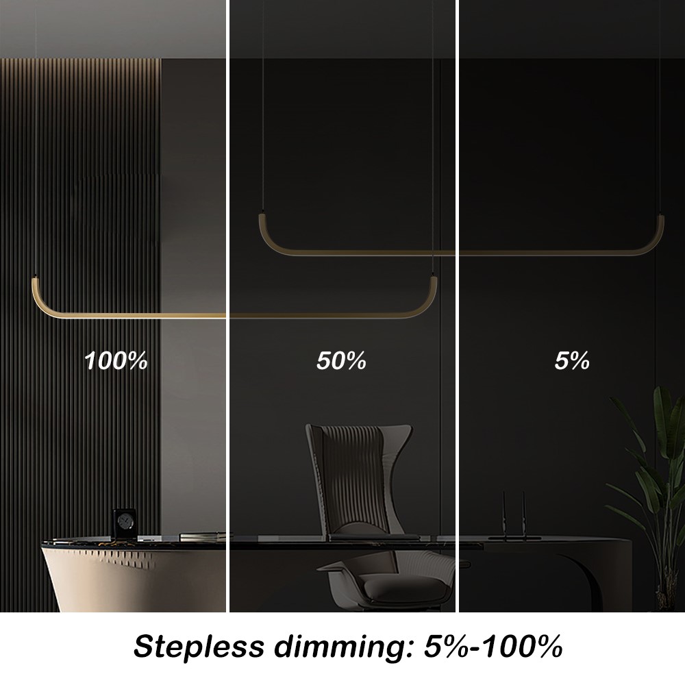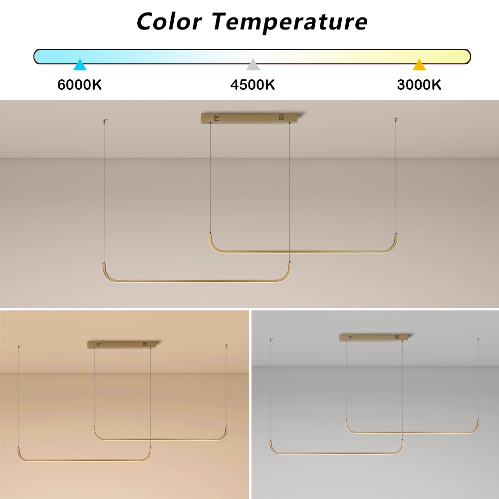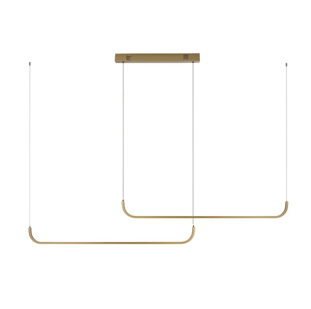 LED 53W Tuya ZigBee CCT - Závěsné svítidlo, kov, zlatá, dif plast opál, LED 53W, 3640lm, smart TUYA, Zigbee 3.0, dálk ovl. (souč.) nebo tel. CCT nast teplota teplá 3000K-denní 6000K, stmív, 1600x55mm, vč. záv. lank l=1500mm.