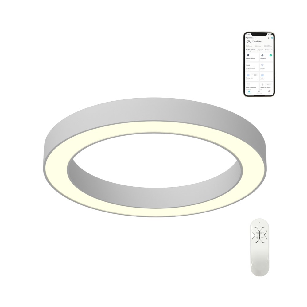 LED 53W Tuya ZigBee CCT IP20 - Stropní svítidlo, kov, bílá, dif plast opál, LED 53W, 3640lm, dálk ovl. (včetně), nebo tel. TUYA Zigbee, nast CCT teplá 2700K-denní 6500K, stmív., Ra80, 230V, IP20, rozměry d=600mm, h=70mm.