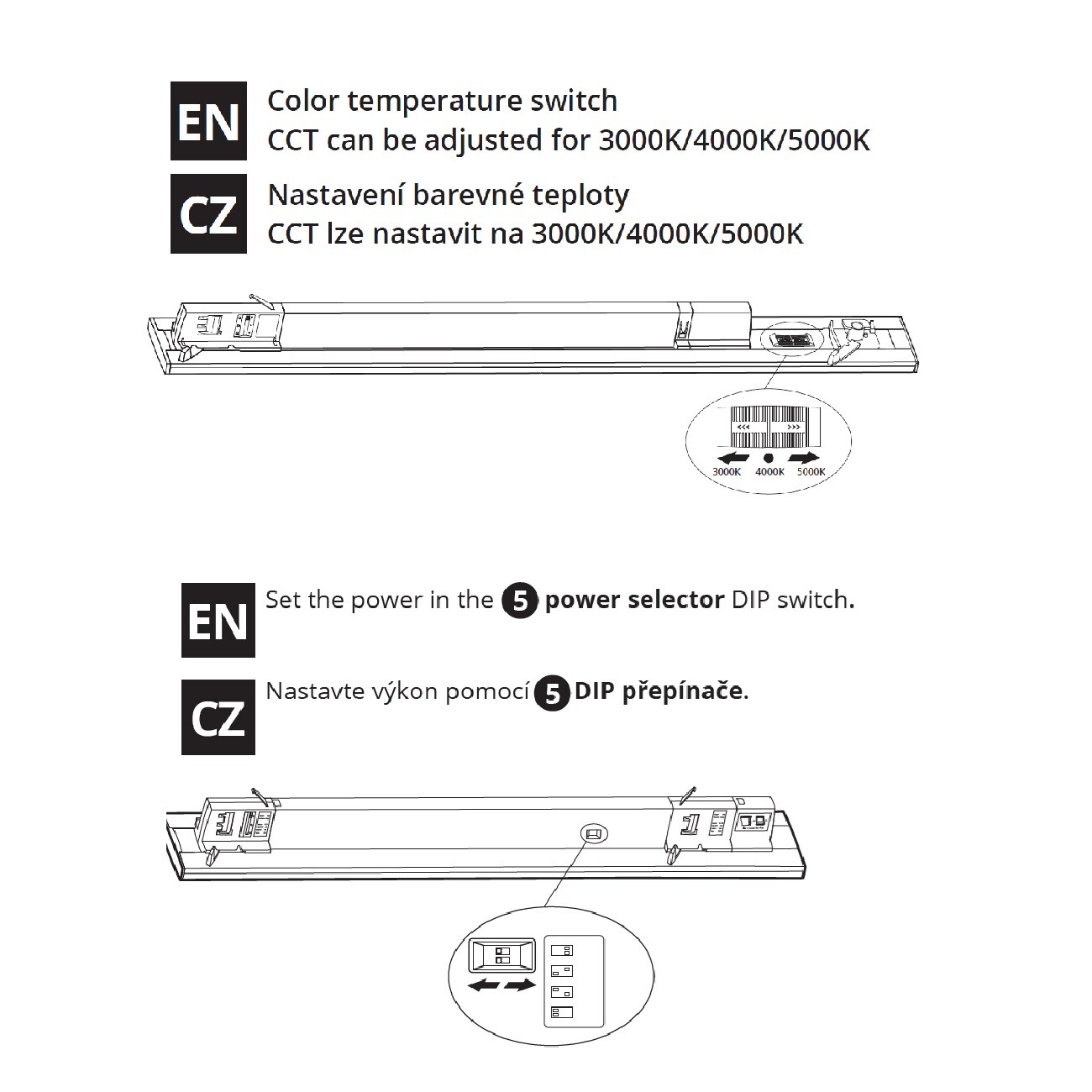 LED 60W/55W/50W/45W, CCT 3000K/4000K/5000K, 120° Lištové svítidlo