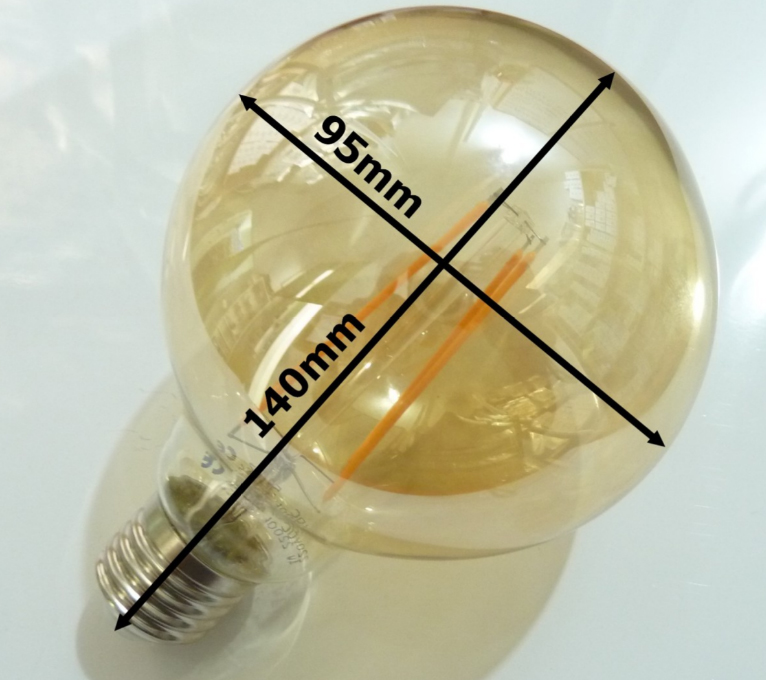 LED žárovka retro 4W - Světelný zdroj, základna kov, difuzor sklo jantar, žárovka LED 4W, E27, COB, teplá 2200K, 370lm, Ra80, 230V, rozměry d=95mm, l=140mm