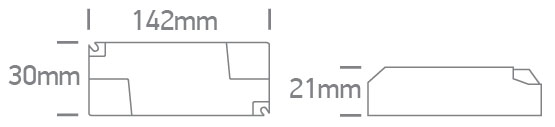 LED zdroj I TRIAC 100mA-350mA - Napájecí zdroj pro LED, vstup 230V, nast. výstup podle přepnačů 100mA/150mA/200mA/250mA/300mA/350mA, stmívání TRIAC, IP20, rozměry 142x21x30mm.