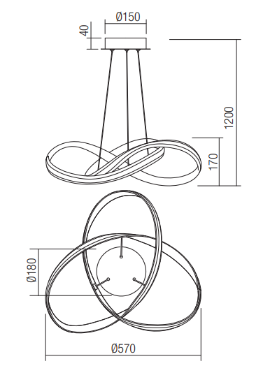 | Rozměry | d=570mm, vč. záv. kabelu h=1200mm, lze zkrátit. Uváděné rozměry jsou pouze informativní a výrobce je může změnit. |