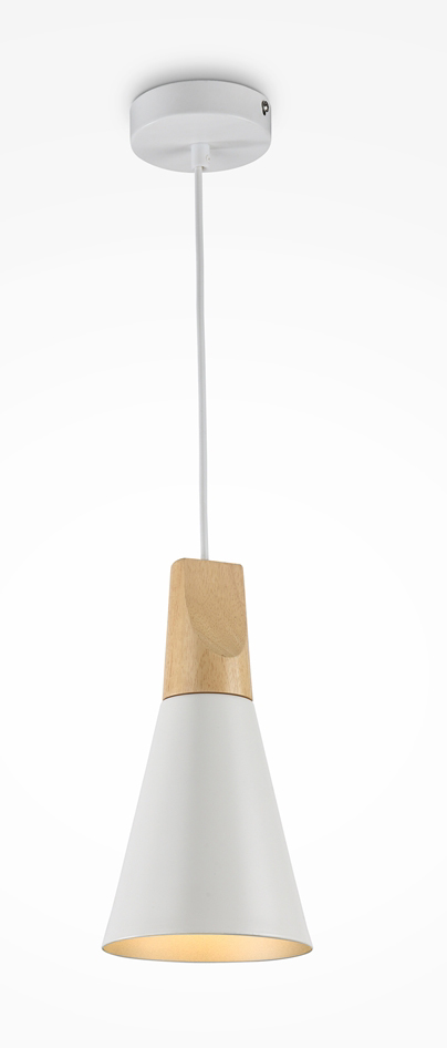 Závěsné svítidlo, těleso kov, povrch šedá/bílá, detaily dřevo světlé, pro žárovku 1x60W, E27, 230V, IP20, tř.1, rozměry dle typu.