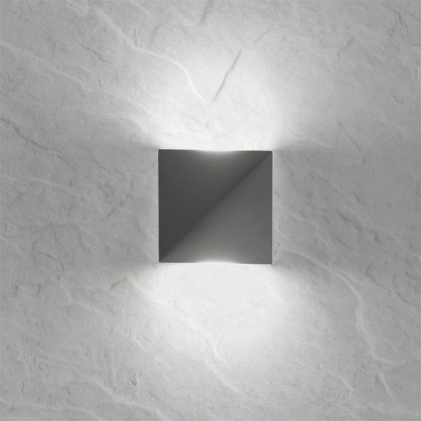 Nástěnné svítidlo, materiál hliník, povrch vrásčitá šedá (RAL 9007), LED 2x3W, teplá 3000K, neutrální 4000K, 350mA, IP68, rozměry h=80mm, l=80mm, w=18mm, svítí nahoru/dolů