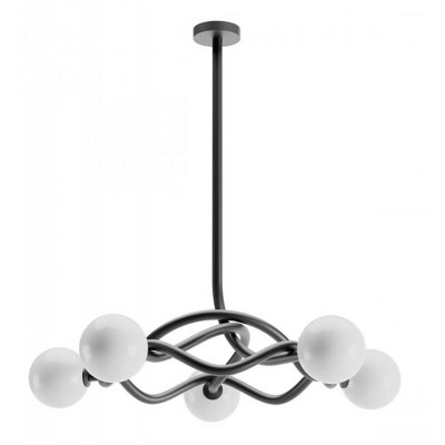 LIVIDO 5x28W, E14 - Závěsné svítidlo, těleso kov, povrch černá mat, difuzor sklo opál, pro žárovku 5x28W, E14, 230V, IP20, tř.1, rozměry d=960mm, h=350mm, vč závěsu l=1067mm.