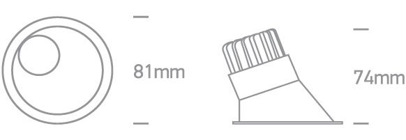 LOMEL BI 8W - Stropní podhledové, bodové, Darklight, svítidlo, ASYMETRICKÉ svícení, těleso kov, povrch bílá, LED 8W, 560lm, teplá 3000K, vyzař. úhel 50°, 230V, IP20, tř.2, rozměry d=81mm, h=74mm.