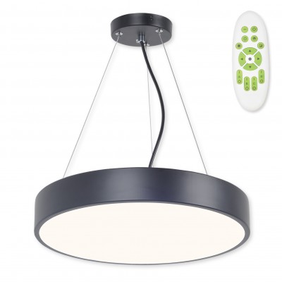 LUCKEST HL CCT 60W - Závěsné svítidlo, kov, černá, dif plast opál, LED 60W, 6000lm, dálk ovladačem (včetně) stmívatelné, nast teplota CCT teplá 3000K-denní 6500K, Ra80, 230V, IP20, rozměry d=600mm, h=50mm, závěs l=1350mm