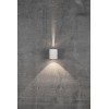 Nástěnné svítidlo interiérové/venkovní, těleso hliník/kov/nerez/mosaz, povrch bílá/černá/šedá/galvanizovaná/nerez/mosaz, difuzor plast, LED 2x6W, 500lm, teplá 2700K, Ra80, 230V, IP44, tř.1, rozměry 104x87mm, svítí nahoru/dolů, vyzařovací úhel 75°