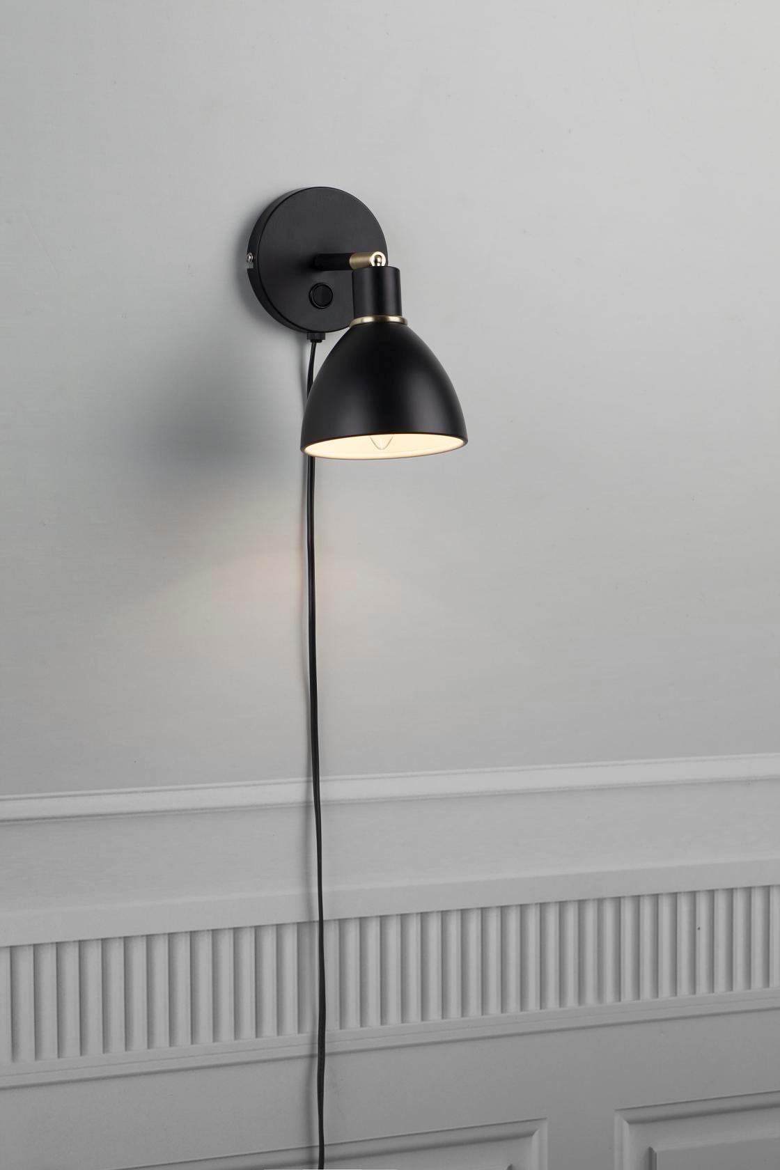 SKLADEM MERINA WALL 1x28W E27 Nástěnná lampa, dvě ramena, základna kov, stínítko kov, povrch černá, detaily měď, nebo bílá, detaily nikl, pro žárovku 1x28W, E27, A60, 230V, IP20, tř.2. rozm stínítko d=160mm h=156mm, rameno l=740mm, vč. vypínače na základně