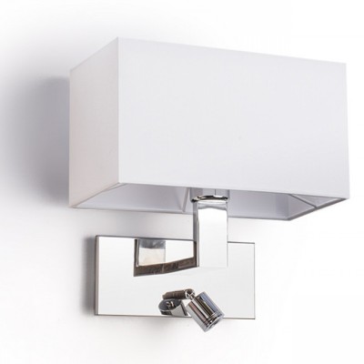 NUMIN WALL 1x42W E27 A - Nástěnné svítidlo, nastavitelný směr svícení, základna kov, povrch chrom lesk, stínítko textil bílá, pro žárovku 1x42W, E27 + LED 1x3W, 3000K, 140lm, 230V, Ra80, IP20, tř.1. rozměry 180x280x280mm