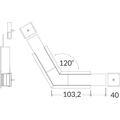 NUPHAR 07 spojka 120 - Spojovací komponent profilu, horizontální, 120°, materiál hliník+polykarbonát PC, povrch černá, rozměry 103,2x40mm