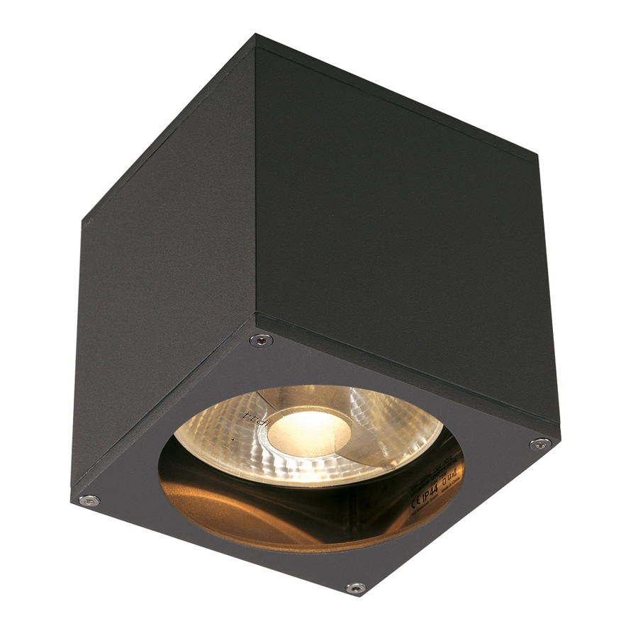 Nástěnné bodové svítidlo, exteriérové, venkovní, materiál hliník, povrch šedostříbrná, bílá, černá, krycí sklo čiré, pro žárovku 1x75W, GU10 ES111, 230V, IP44 , rozměry 130x135x130mm, svítídolů