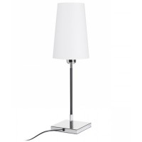 Stolní lampa, těleso kov, povrch chrom lesk a lak černá mat, stínítko textil bílá/černá, pro žárovku 1x28W, E27, 230V, IP20, tř.2. rozměry základna 140x140mm, h=590mm, vč. vypínače na kabelu