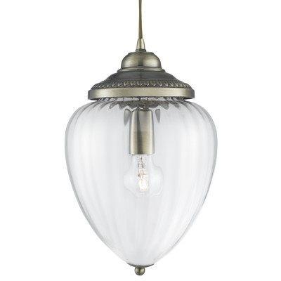 Závěsné svítidlo, základna kov, těleso kov, krycí sklo čiré, pro žárovku 1x10W, E27, 230V, IP20, tř.1. rozměry sklo d=220mm, h=330mm, včetně závěsu l=1000mm, lze zkrátit