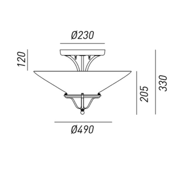 Stropní svítidlo, těleso kov, povrch mosaz antik, stínítko sklo, pro žárovku 3x77W, E27, A60 / 3x46W, E14, 230V, IP20, tř.1, rozměry dle typu svítidla
