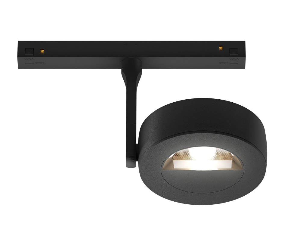 SITAR 15W 48V DALI - Svítidlo do magnetického systému, reflektor, nast. směr svícení, těleso kov, povrch černá, LED 15W, 675lm, teplá 3000K, stmív. DALI, 48V, IP20, rozměry d=102mm, h=155mm.