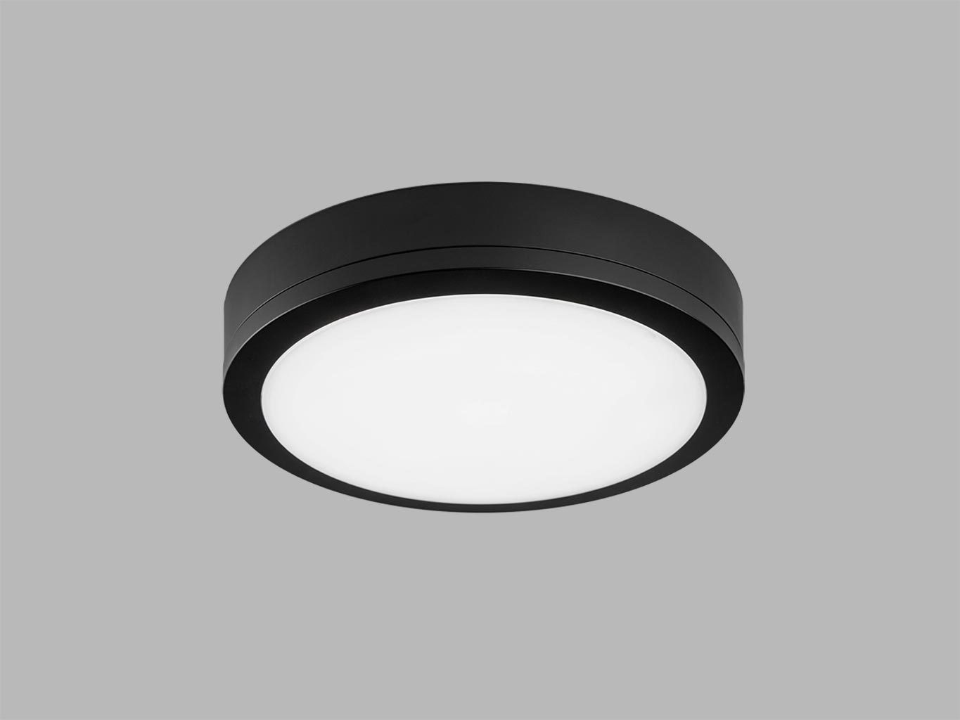 Stropní venkovní svítidlo, plast černá, dif plast opál, LED 18W, 1950lm, přepín. teplota CCT teplá 3000K/neutr. 4000K/denní 5700K, stmív. dle typu DALI-PUSH/Zigbee, 230V, IP65, Ra80, rozměry d=275mm, h=60mm.