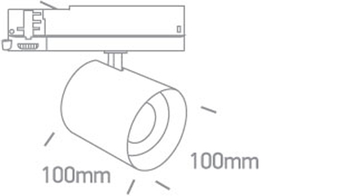Bodové svítidlo do 3F lišty, nast. směr svícení, těleso hliník, povrch černá/bílá, LED 35W, 4200lm, teplá 3000K/neutrální 4000K, stmív. DALI/TRIAC dle typu, vyzař. úhel 38°, Ra90, 230V, IP20, tř.2, rozměry d=100mm, h=100mm.
