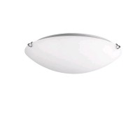 Stropní svítidlo, základna kov, povrch bílá, difuzor sklo triplex opál, pro žárovky, nebo LED, 230V, IP20, nebo do koupelny IP44, rozměry d=250mm, h=110mm, úchyt skla bajonet