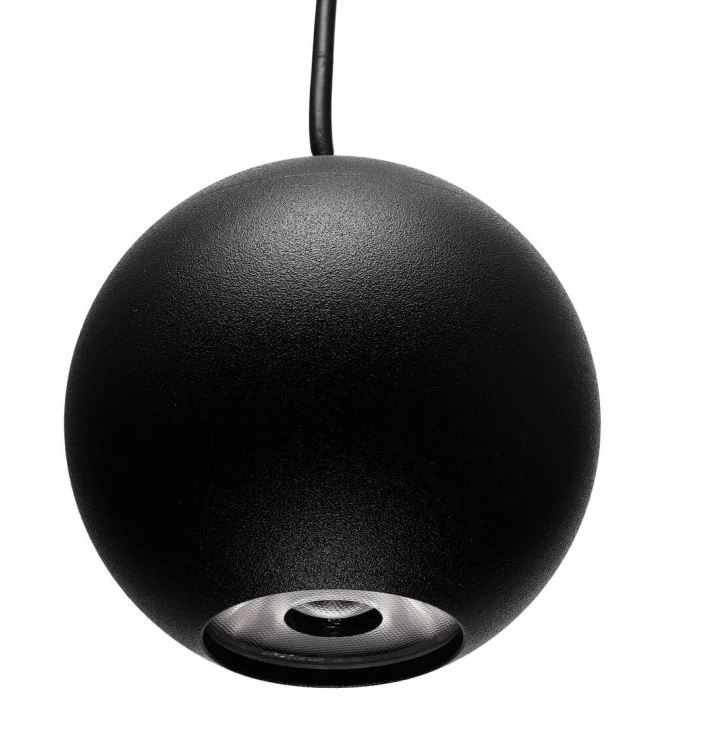 SUKY 8,5W DALI - Závěsné bodové svítidlo do mag. systému, kov, černá, LED 8,5W, 410lm, teplá 3000K, stmív. DALI DT6, vyz. úhel 36°, Ra90, 48V, IP20, rozměry d=70mm, vč závěs kabelu l=1500mm, lze zkr.
