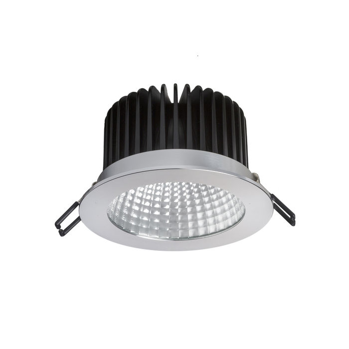 SUmmIT - VÝPRODEJ Stropní, vestavné, bodové, svítidlo, těleso hliník, povrch hliník leštěný, sklo čiré, LED 15W, teplá 2700K, 600lm, Ra80, vč trafa 230V/700mA na kabelu, IP20, rozměry d=140mm, h=12
