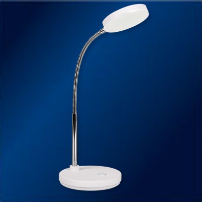 TEROS TL I - Stolní kancelářská lampa, nastav směr svícení, husí krk, těleso kov, povrch bílá, difuzor plast opál, LED 5W, teplá 3000K, 420lm, 230V, IP20, rozměry h=400mm.