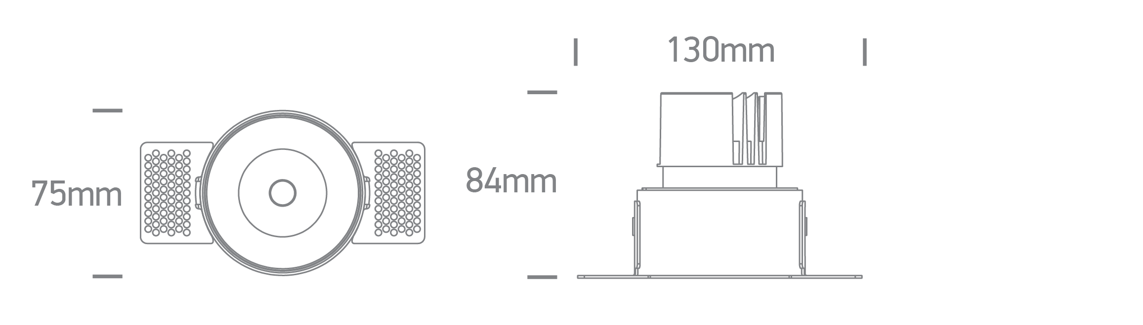 VORAC BI 6,5W - Stropní podhledové, bodové, bezrámečkové, Darklight, svítidlo, těleso kov, povrch černá, LED 6,5W, 500lm, teplá 3000K, stmív, vyzař. úhel 38°, 700mA, IP54, tř.3, d=75mm, h=84mm, driver SAMOSTATNĚ