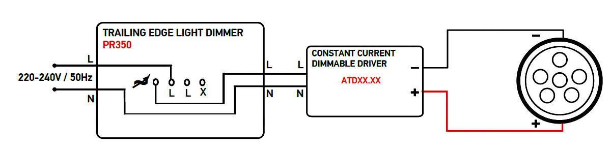 | Použití | Triakový stmívač, pro osvětlení s příkonem 10W-350W |