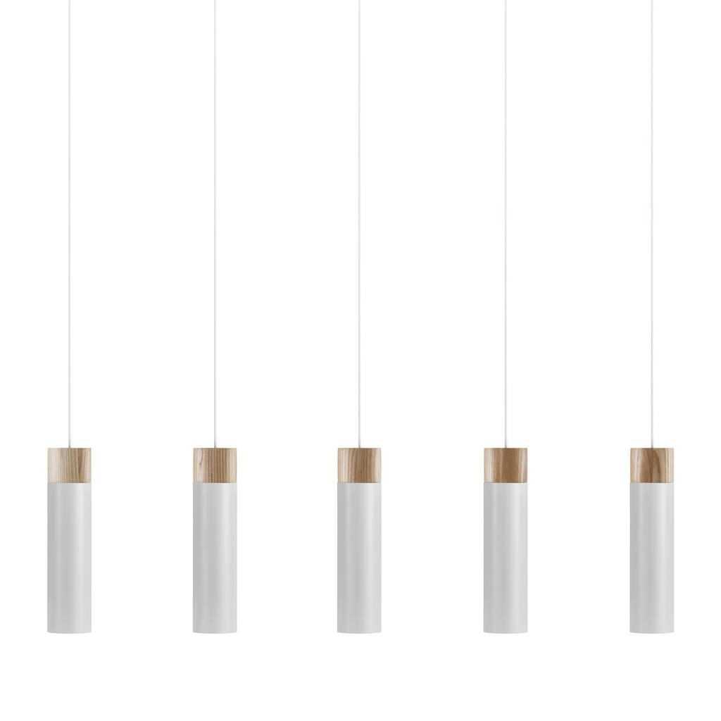 TRE 5 - Závěsné svítidlo, těleso kov, povrch černá mat detaily dřevo černé, pro žárovku 5x15W, GU10 ES50, 230V, IP20, rozměry základna l=806mm, stínítko d=60mm, h=246mm, vč záv kab h=2000mm, lze zkr