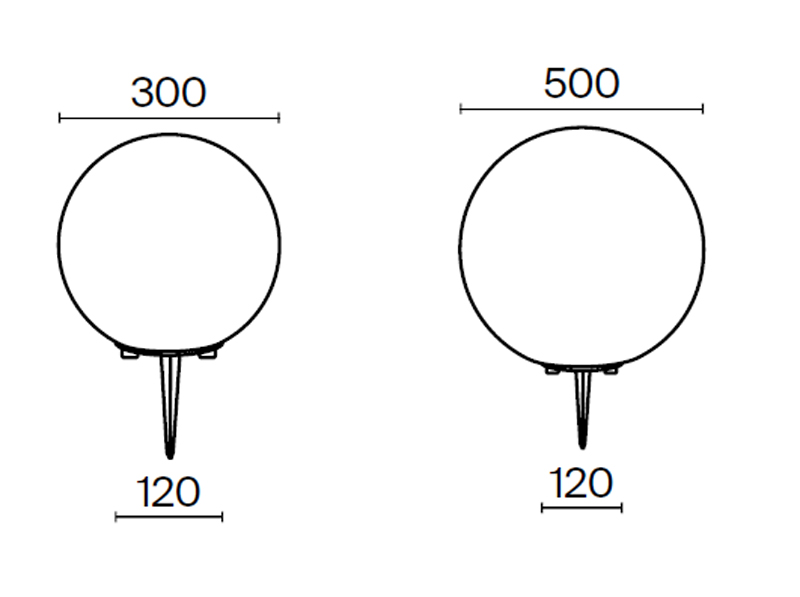 Zemní venkovní svítidlo do záhonu, těleso plast, difuzor plast opál, pro žárovku 1x30W, E27, 230V, IP54, tř.1. rozměry dle typu, s bodcem do záhonu.