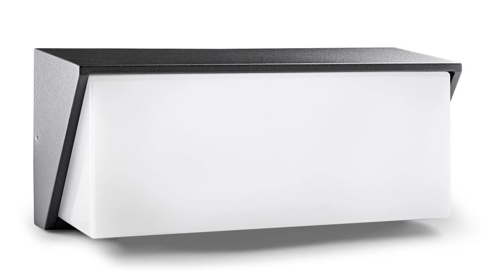 TYLERO WL 12W CCT IP54 - Nástěnné venkovní svítidlo, základna hliník, povrch černá antracit, difuzor plast opál, LED 12W, 780lm, přepín CCT teplá 3000K-neutrální 4000K, 230V, IP54, rozměry 250x110x95mm.