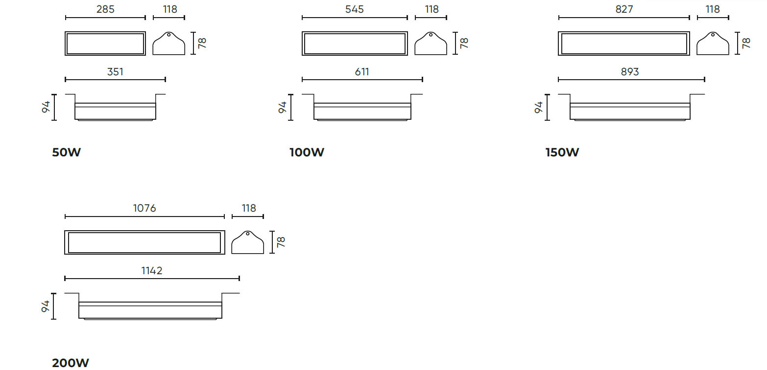 Průmyslové svítidlo, těleso hliník, povrch černá, kryt plast čirý, LED 50W/100W/150W/200W, neutrální 4000K, Ra80, vyzařovací úhel 120°x60°, 230V, PF>0.95, IP65, IK08, tř.1, rozměry dle typu