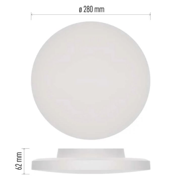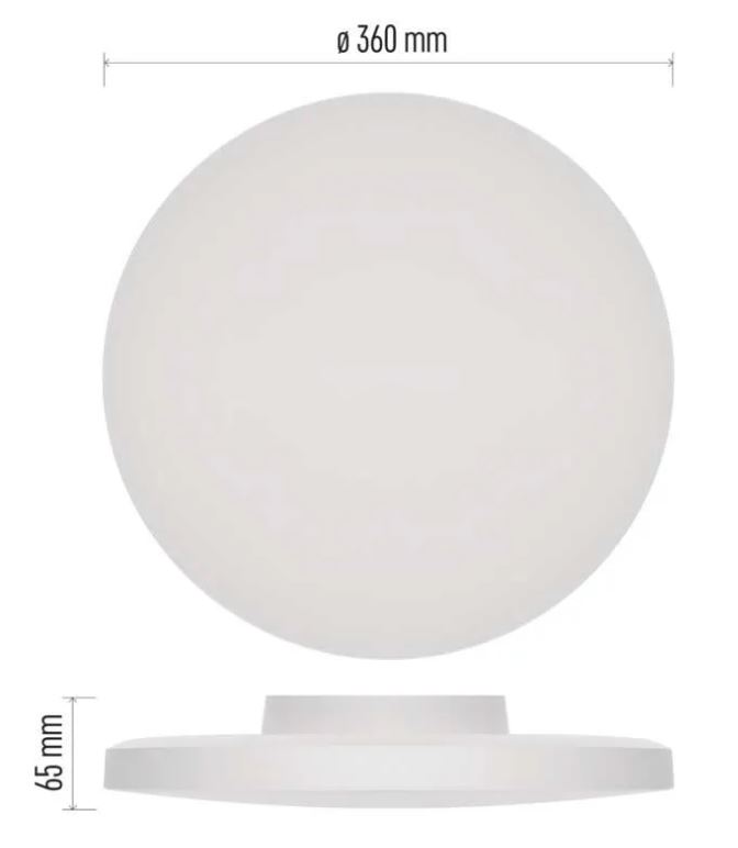 Stropní svítidlo, kruhové, těleso plast bílá/černá, difuzor plast opál, LED 15W/18W/32W, přepín CCT teplá 3000K/neutrální 4000K/denní 5700K, Ra80, 230V, IP55, rozměry dle typu.