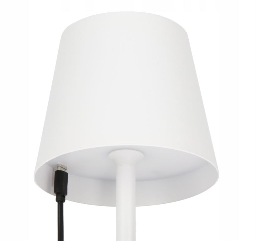 Stolní venkovní lampa, hliník, bílá/černá, LED 3,5W, 400lm, dotyk nastav. teplota CCT teplá 3000K-denní 5000K, dotyk. stmív, napájení USB, 3,7V baterie 2000mAh, svítí až 8h, IP54, d=108mm, h=380mm