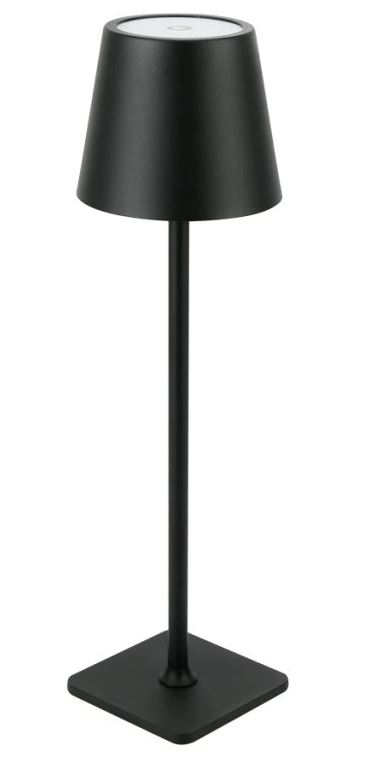 SKLADEM ADAME 1,1W, IP54, USB C Stolní lampa, těleso hliník, černá mat, krycí plast čirý, LED 1,1W, 100lm, teplá 3000K, dotyk stmívání, Ra80, napájení akumulátor 2200mAh, nabíjení USB C, IP54, rozměry d=110mm, h=280mm
