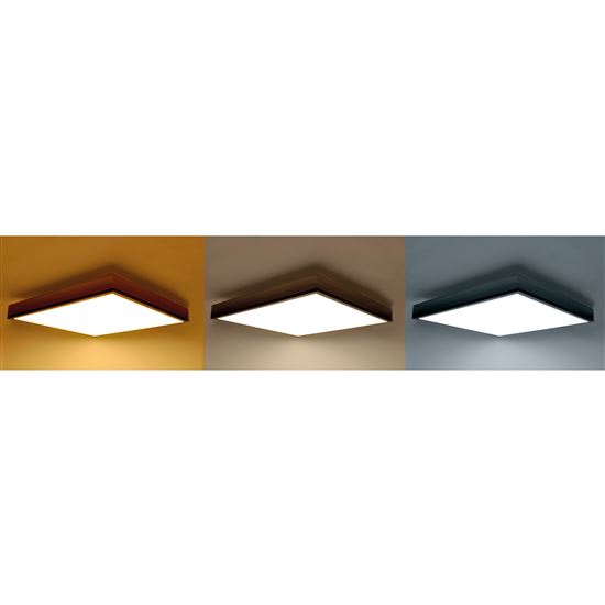 WOODS SQ, 40W, CCT - Stropní svítidlo, rámeček dřevo světlé, difuzor plast opál, LED 40W, 3000lm, dálkovým ovladačem stmívatelné, CCT nast teplota teplá 3000K, - denní 6400K, Ra80, 230V, IP20, rozměry 450x450x75mm
