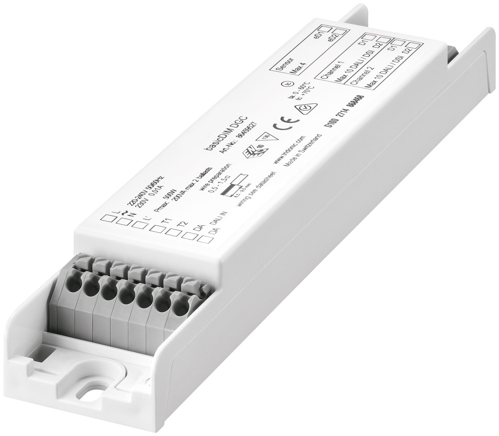 Zesilovač DIM T basicDIM DGC Modul Input = 2xsD+DALI+M-Sensor/ output = 2x10 DSI~DALI Ch1+Ch2 Relé 159x30x21mm WH, pro funkci tlačítkového modulu, je nutno pomocí SW deaktivovat fci multisenzor