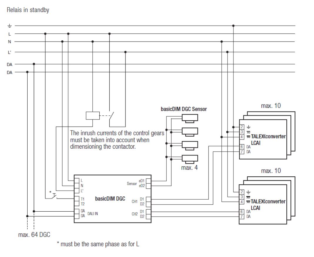 Zesilovač DALI, PUSH SWITCH/DIM - Zesilovač DIM T basicDIM DGC Modul Input = 2xsD+DALI+M-Sensor/ output = 2x10 DSI~DALI Ch1+Ch2 Relé 159x30x21mm WH, pro funkci tlačítkového modulu, je nutno pomocí SW deaktivovat fci multisenzor
